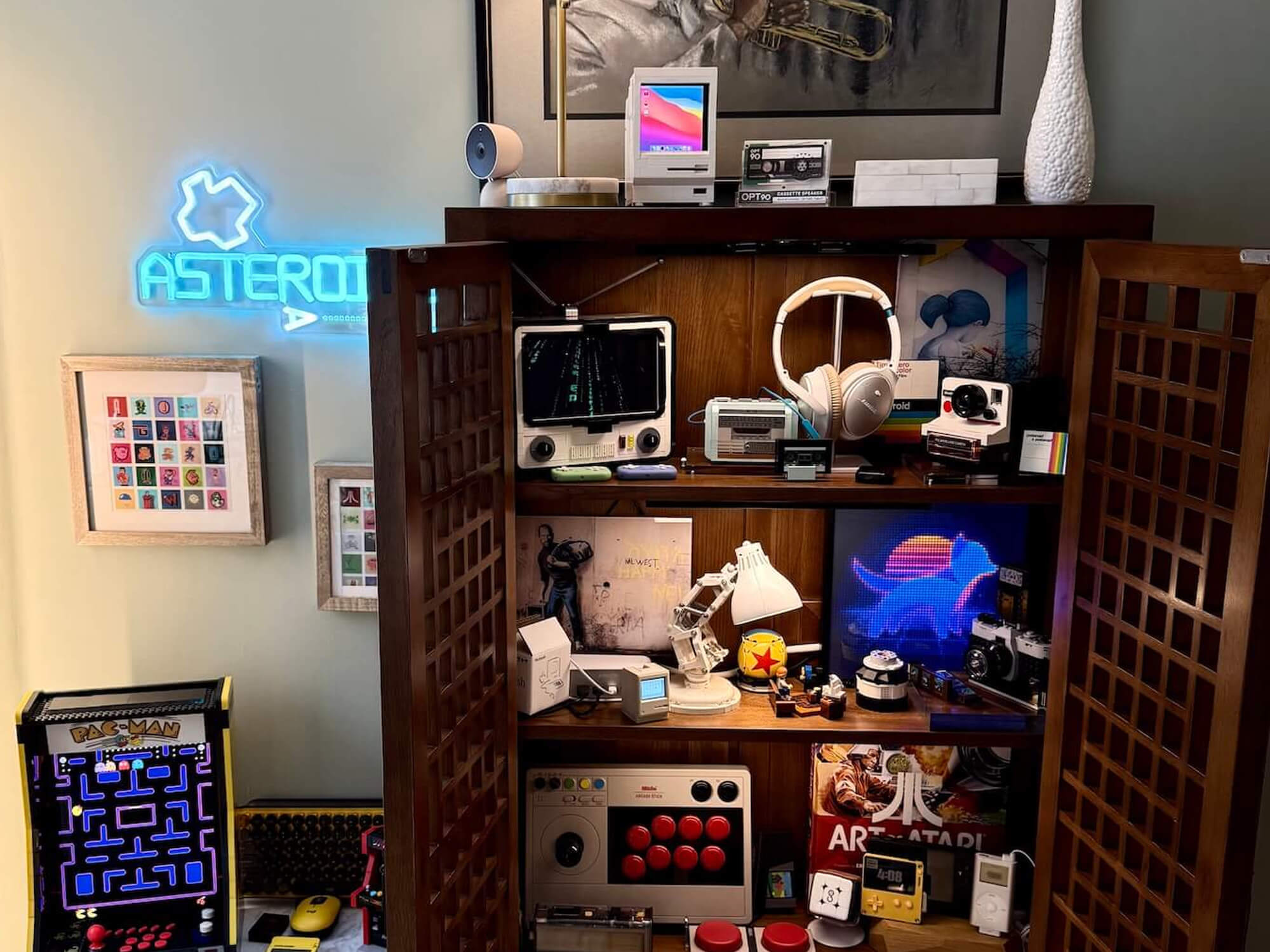 September 18, 2025Cabinet of Curiosities TINKERINGA living, rotating home for my nostalgia machines, music, and art—built to be explored by guests. The Room & VibeCabinet: Maria Yee Room & Board Upright Cabinet/Credenza A warm, modern display with wood grid that feels like a tiny museum in the dining...